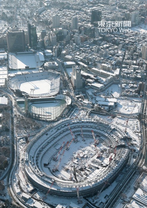 雪化粧した新国立競技場建設現場です。 #雪 #東京 #新国立競技場