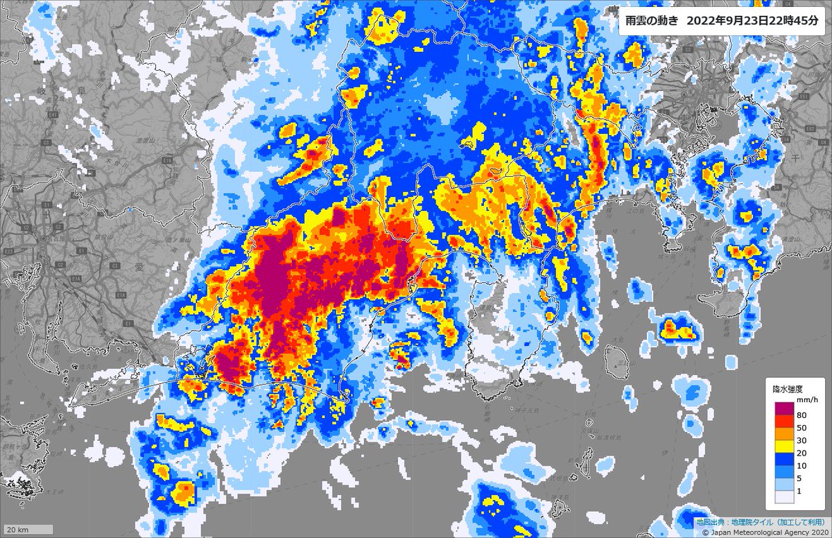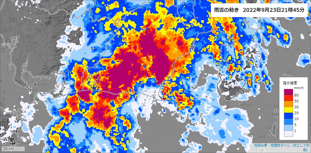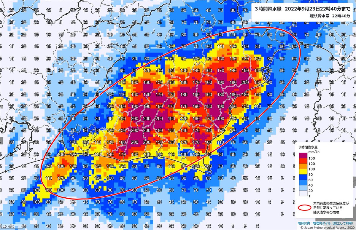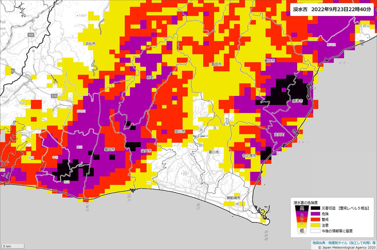 【静岡県で記録的短時間大雨情報】 21時40分までに、 牧之原市付近で120ミリ以上 島田市付近で約110ミリ 大変に危険な雨の降り方になっています。 直ちに身の安全を図るようにしてください。 #大雨 #台風15号 #静岡