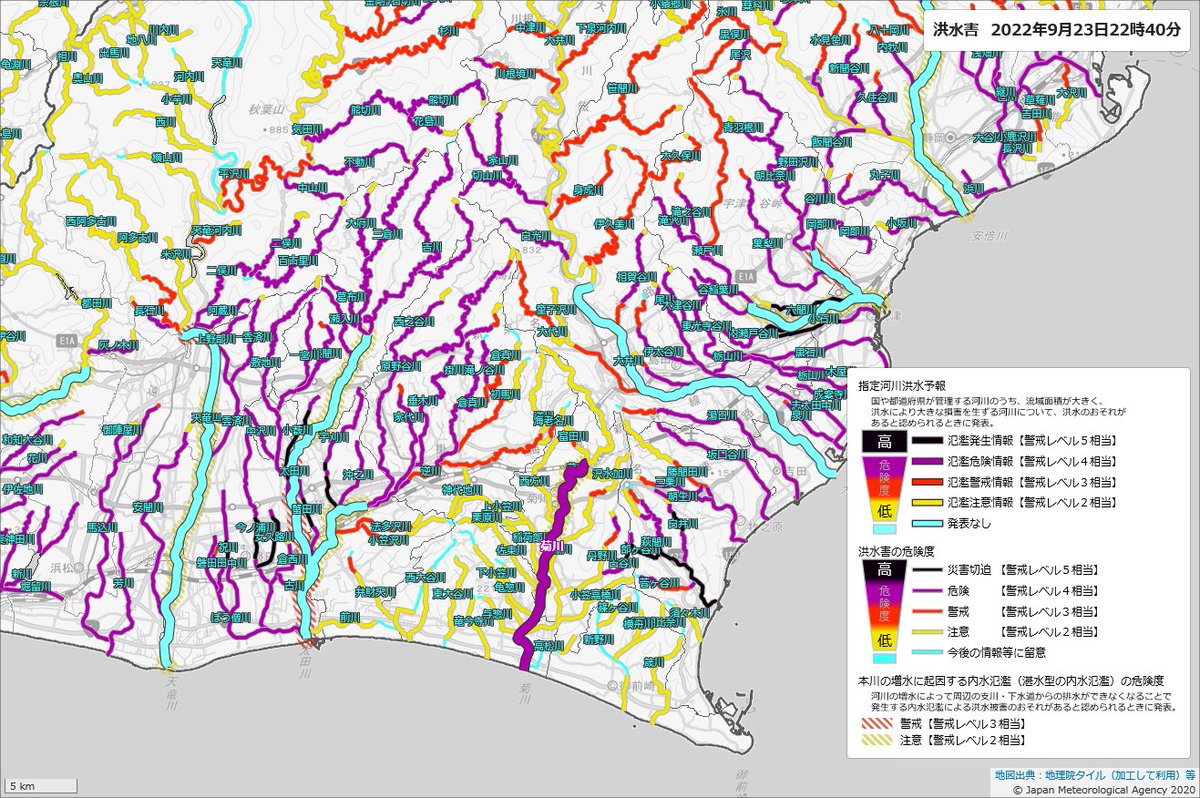 【静岡の河川は危険な状態に】 静岡の河川は各地で氾濫危険水位を超えています。 安全を確保してください。 2階以上の高いところに移ってください。 外に出るのは危険です。 近くの頑丈な建物や高いところを探してください。 自らの命を守っ…