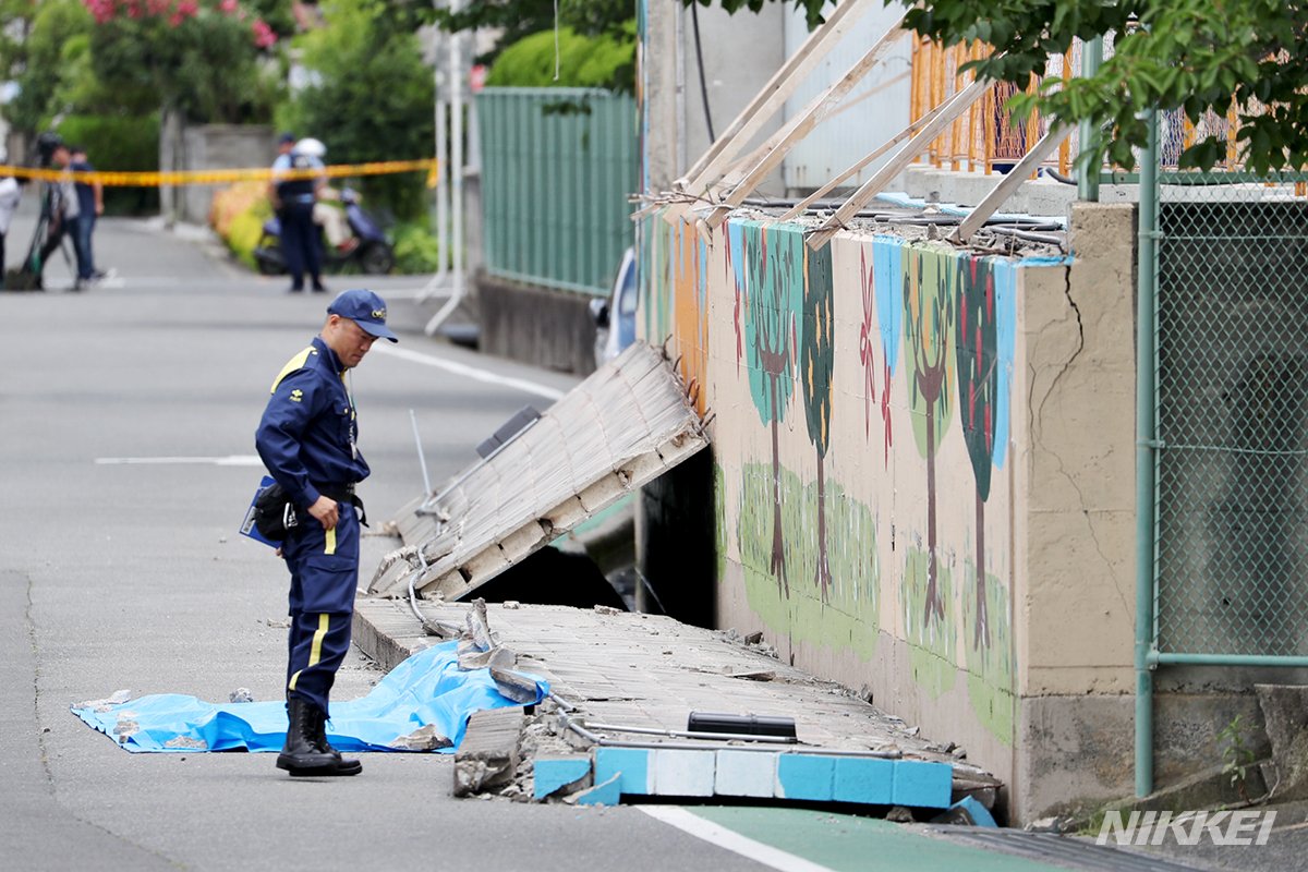 高槻市栄町の市立寿栄小学校で18日、プールの外壁が地震で歩道側に倒れ、下敷きとなった同小4年の女児(9)が死亡しました。記事→