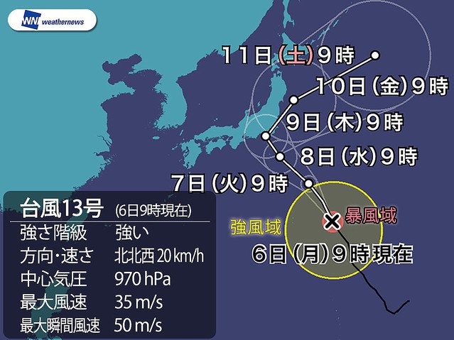 【勢力強く】台風13号、暴風域を伴い9日頃に関東直撃のおそれ