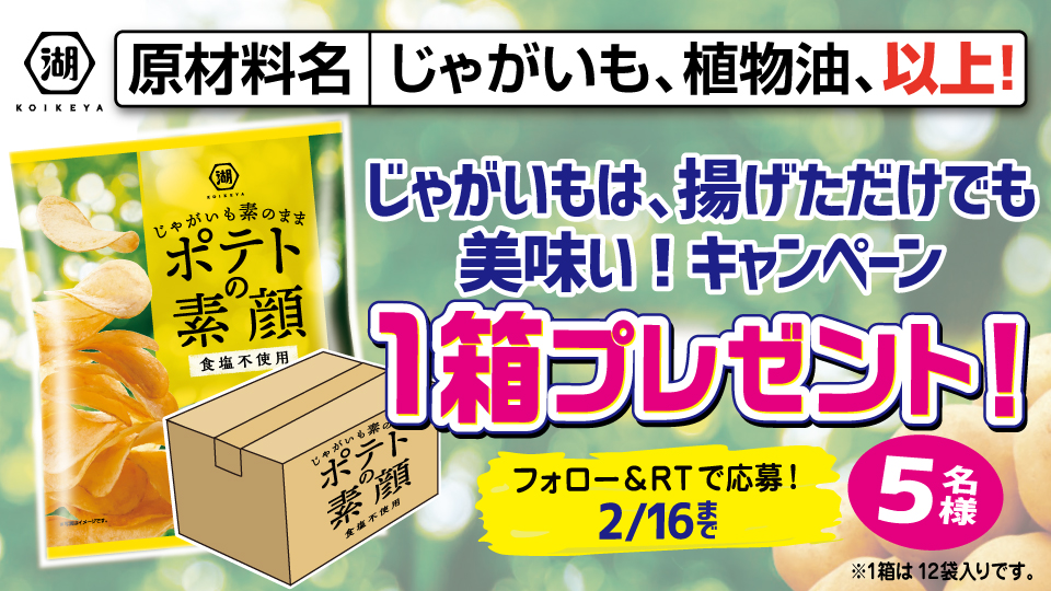 ⭐フォロー&RTで応募 ⭐ 「ポテトの素顔」再発売記念 原料は… じゃがいも、植物油、以上! #じゃがいもは揚げただけで美味い CP ?5名様に1箱当たる? ?ご応募は2
