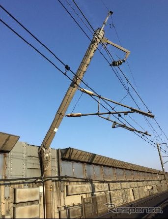 全線運転再開まで10日前後 東北新幹線、線路脇の電柱傾く