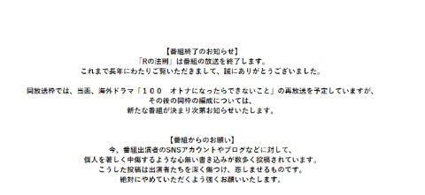 1000RT:【山口達也の契約解除で】NHK「Rの法則」放送終了を発表