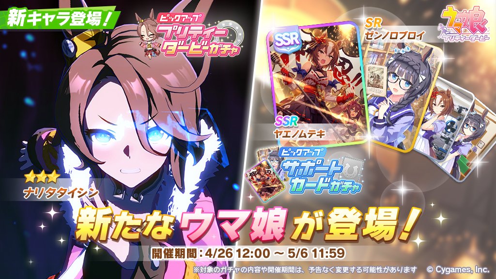 遂に揃ったBNW!「ウマ娘」、育成ウマ娘として「ナリタタイシン」が登場 サポートカードとしてSSR「ヤエノムテキ」&SR「ゼンノロブロイ」も