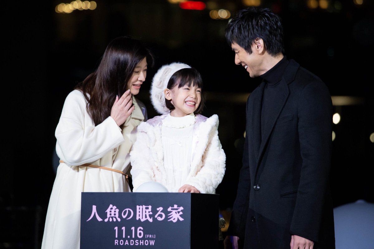 東京ミッドタウンのイルミネーション点灯式に映画「人魚の眠る家」から西島秀俊、篠原涼子、稲垣来泉が登壇