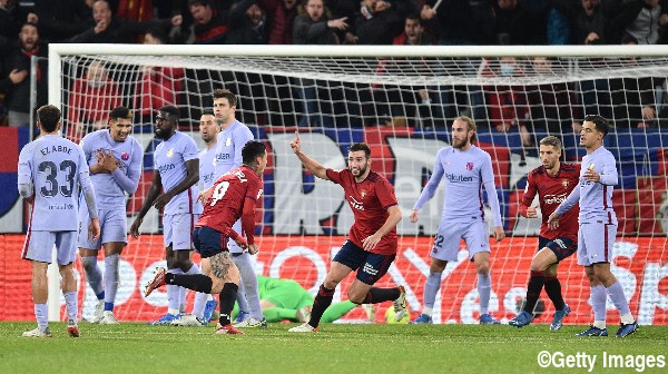 バルセロナ、大ブーイングの勝ち越し弾→終盤に追い付かれてオサスナとドロー