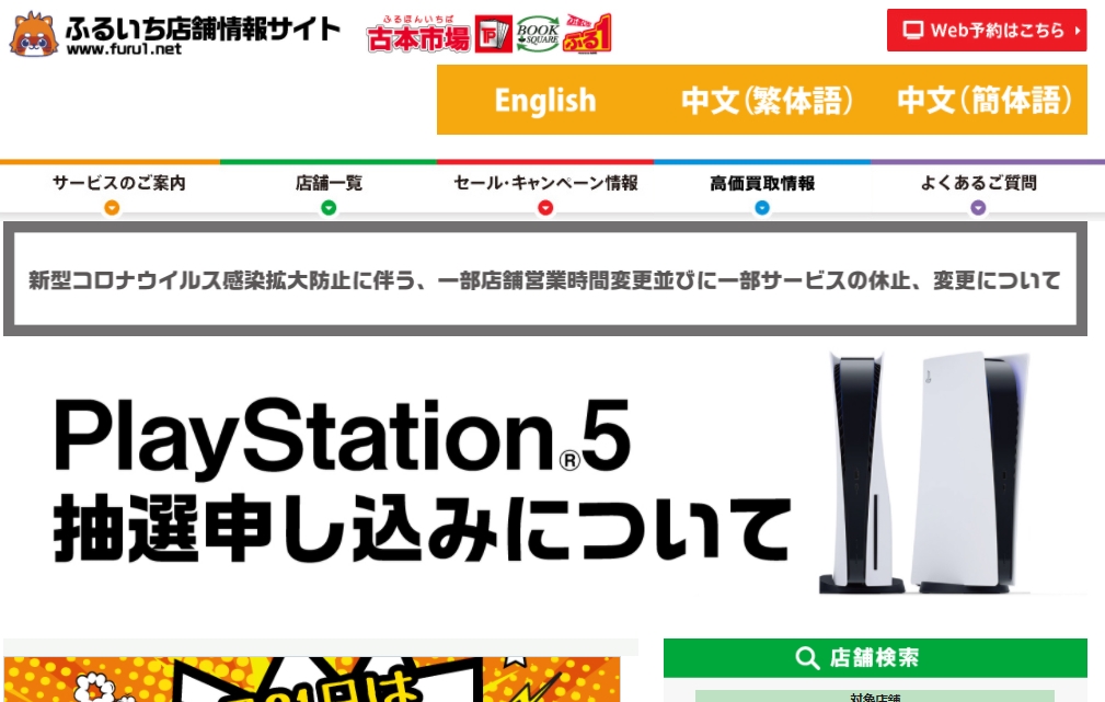 古本市場、一部店舗にて13日18時よりPS5の抽選予約を開始