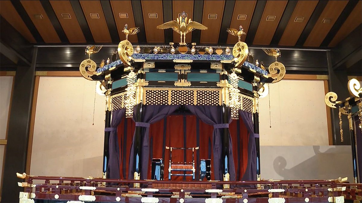 即位礼正殿の儀への準備 「高御座」「御帳台」公開 10月22日に行われる「即位礼正殿の儀」で天皇陛下が立たれる「高御座(たかみくら)」が公開された。