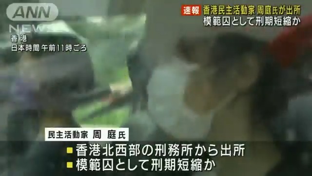 【話題のニュース】 香港の周庭氏が出所 模範囚として刑期短縮か #テレ朝new