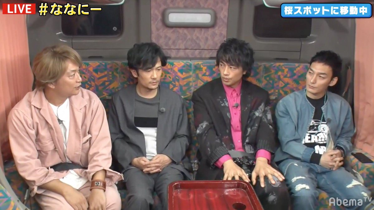 稲垣・草なぎ・香取と斎藤工が生放送で目黒川に出没、屋台飯も楽しむ