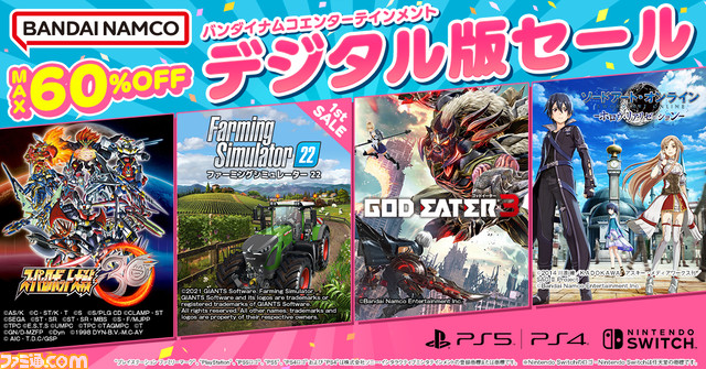 バンダイナムコDLソフトがお買い得となる“スプリングセール”が開催 『スパロボ30』『ゴッドイーター3』『ファーミングシミュレーター 22』などが最大60%オフに!