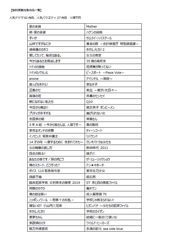 3月31日まで会員登録なしで見られます Hulu、「あな番」「家なき子」「電波少年」など日テレのドラマやバラエティを無料配信 外出が難しい状況を受け