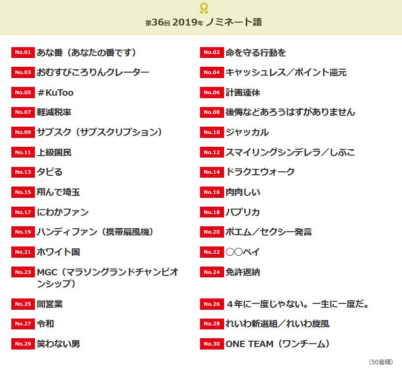 タピる! 「新語・流行語大賞」ノミネート30語を発表 「上級国民」「タピる」「KuT