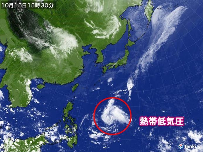 南の海上に渦を巻く雲 「熱帯低気圧」発生