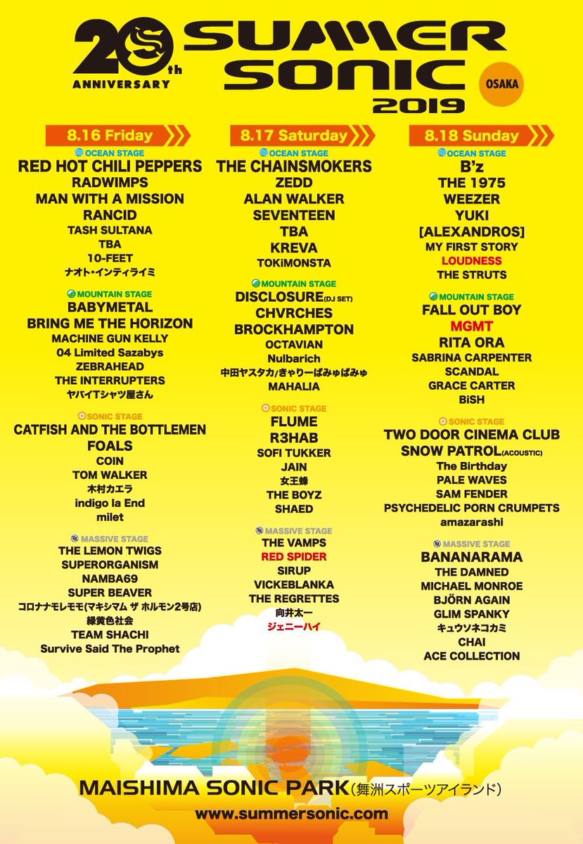 【#サマソニ】 "SUMMER SONIC 2019 OSAKA" ステージ割り発表!! SCANDALは8