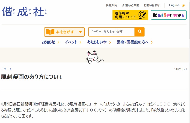 「はらぺこあおむし」なぞらえたバッハ会長らの風刺漫画 出版元、毎日新聞に猛省を求める「不勉強、センスの無さを露呈」|BIGLOBEニュース