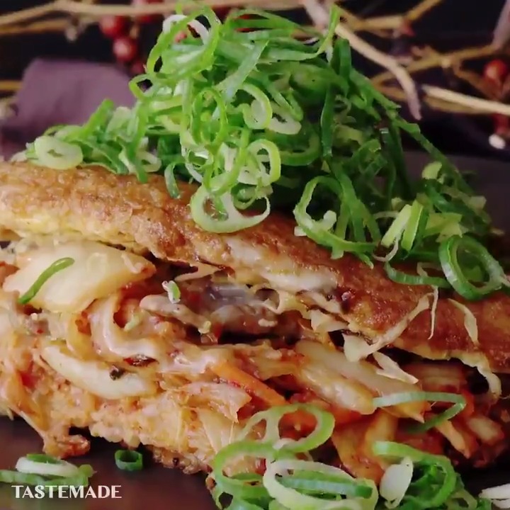【これ一つでおなかいっぱい】お好み焼きみたい♡たまごめしキムチーズ