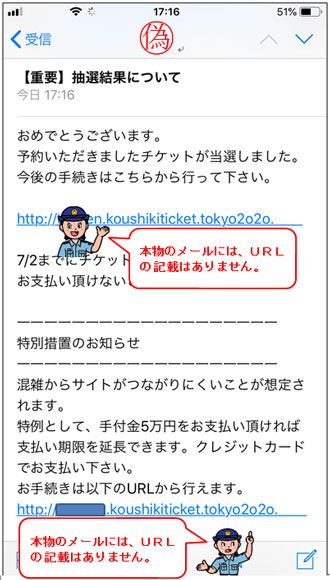 ご注意を 東京オリンピック観戦チケットの「抽選結果発表をかたったニセメール」に注意 6月20日に抽選結果発表