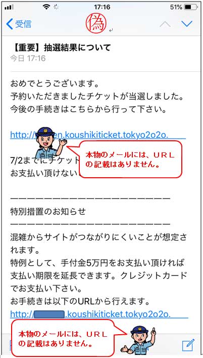 500RT 東京オリンピック観戦チケットの「抽選結果発表をかたったニセメール」に注意 6月20日に抽選結果発表