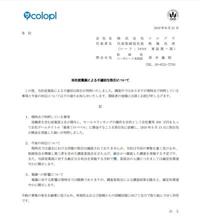 「最果てのバベル」のセルランを操作 コロプラ、自社ゲームのセールスランキング操作を謝罪 自社費用850万円を取引先に頼んで課金させていた