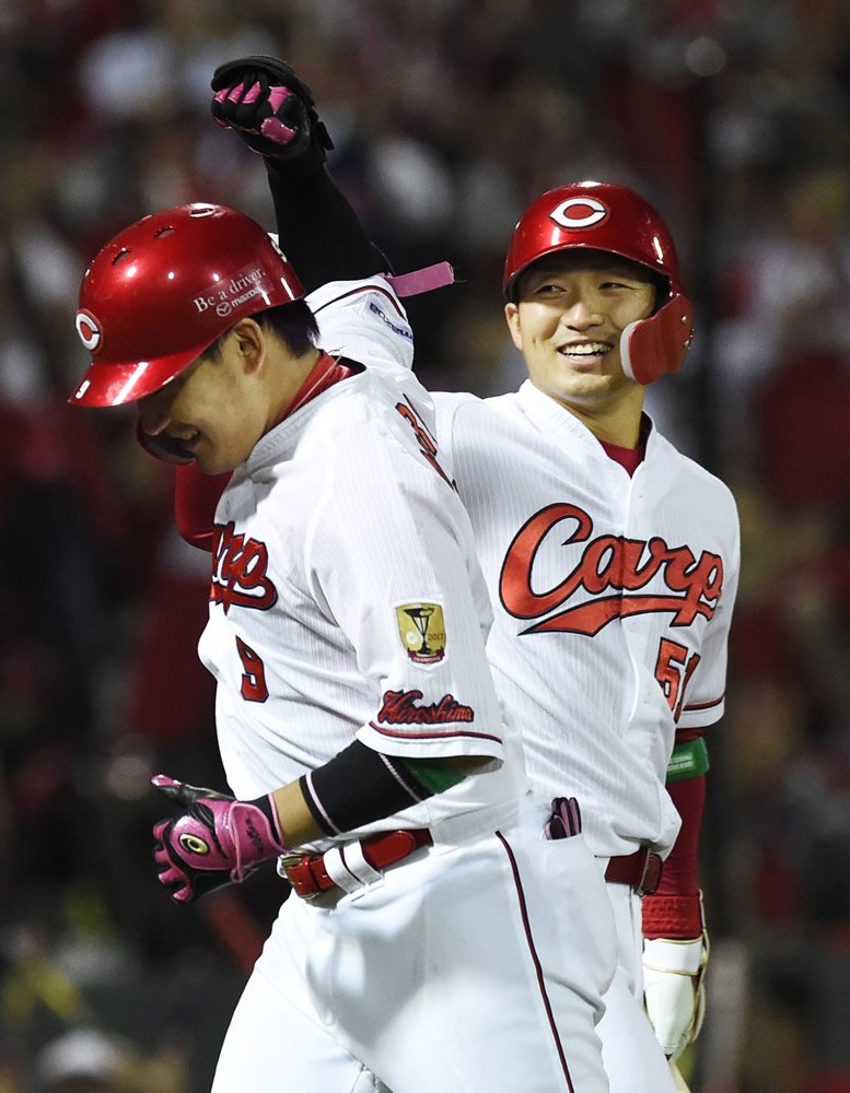 広島イケイケ野間が一塁から生還、ベンチお祭り騒ぎ #