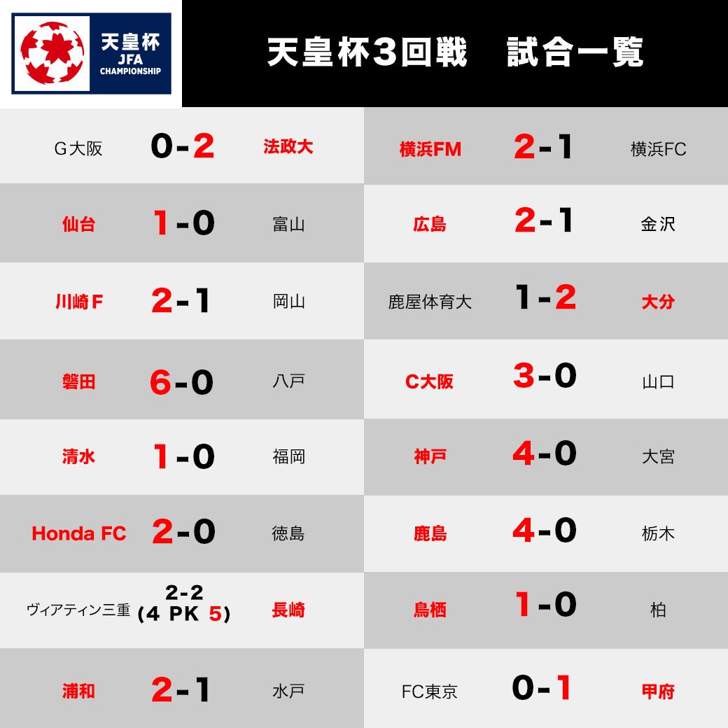 ?#天皇杯 3回戦試合結果 #Jリーグ 詳細はこちら?
