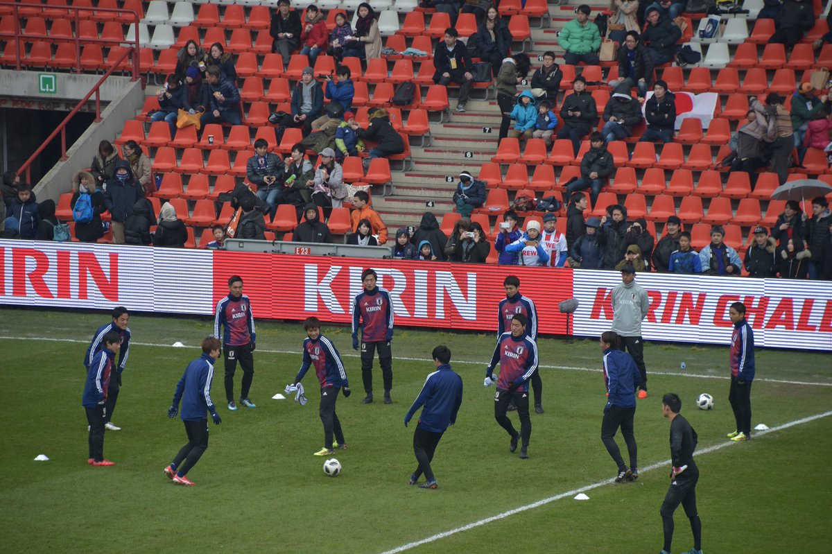 日本代表、スタメン発表! GK:川島、DF:長友、槙野、植田、酒井高、MF:長谷部(C)、山口、柴崎、FW:本田、原口、杉本 (フォーメーションは予想です) #dai