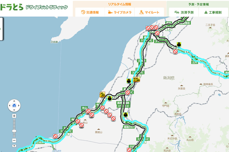 新潟の高速道路で降雪による通行止め継続中。北陸道・関越道・磐越道・日本海東北道