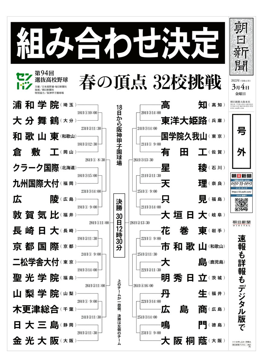 選抜高校野球の組み合わせ決定、選手宣誓は倉敷工主将 18日開幕:バーチャル高校野球
