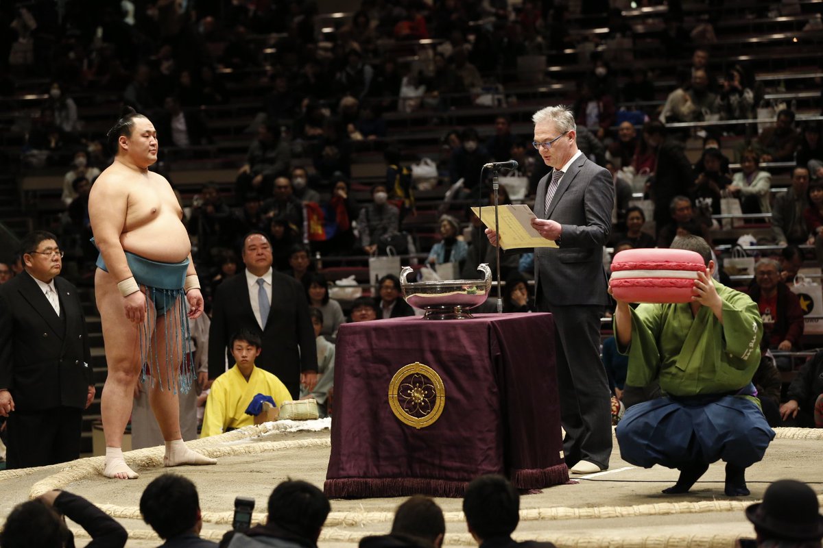<玉鷲初優勝!>日仏友好杯。今場所はピンクのビッグマカロン。#