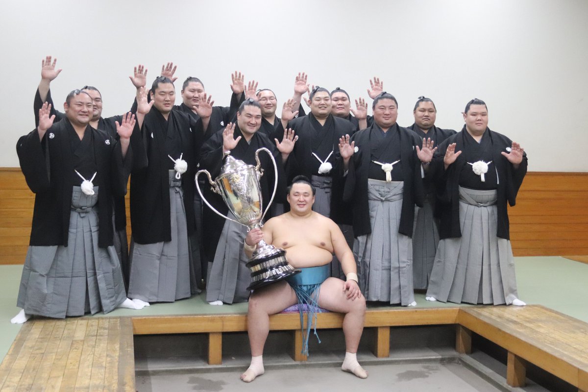 <玉鷲初優勝!>一門の関取衆に歓迎を受ける玉鷲。#