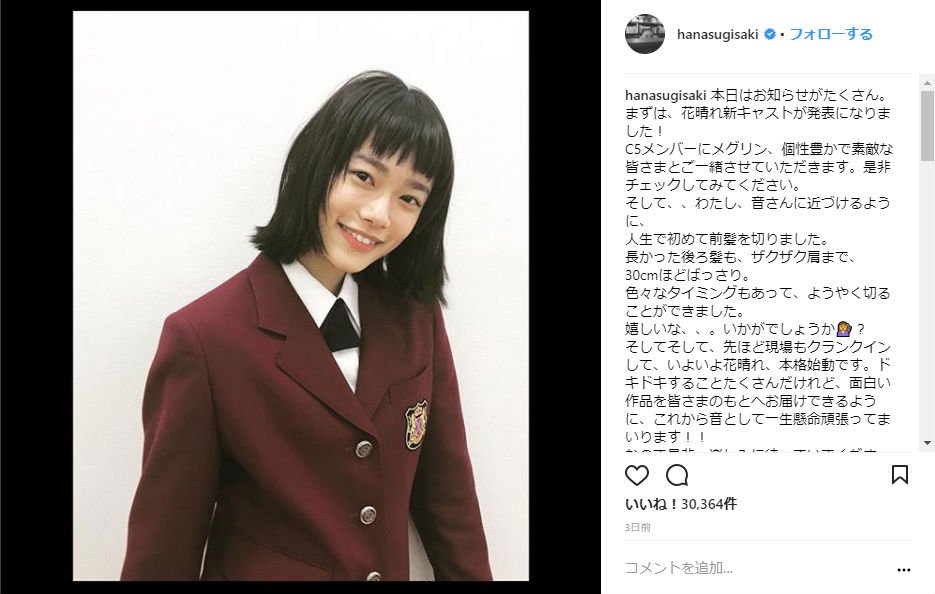 短いのもかわいい 「似合ってる」「印象かわった」 杉咲花、ロングヘアーを30センチカットでオン眉に