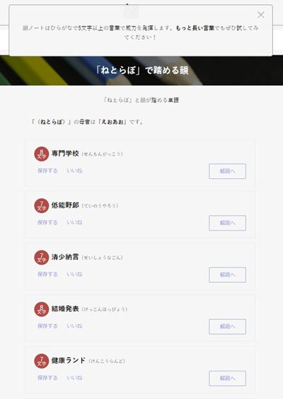 「ねとらぼ」→「弁当箱」 入力した単語の母音を解析し韻を踏んでくれる検索サイト「韻ノート」 - ねとらぼ