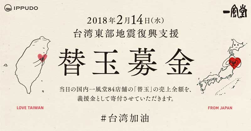 一風堂、「替玉募金」を2月14日に実施 台湾東部地震の復興支援に替玉の売上全額を寄付