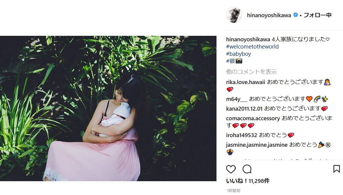 おめでとうございます! 「4人家族になりました」 吉川ひなの、第2子出産報告ショットがまるで女神様