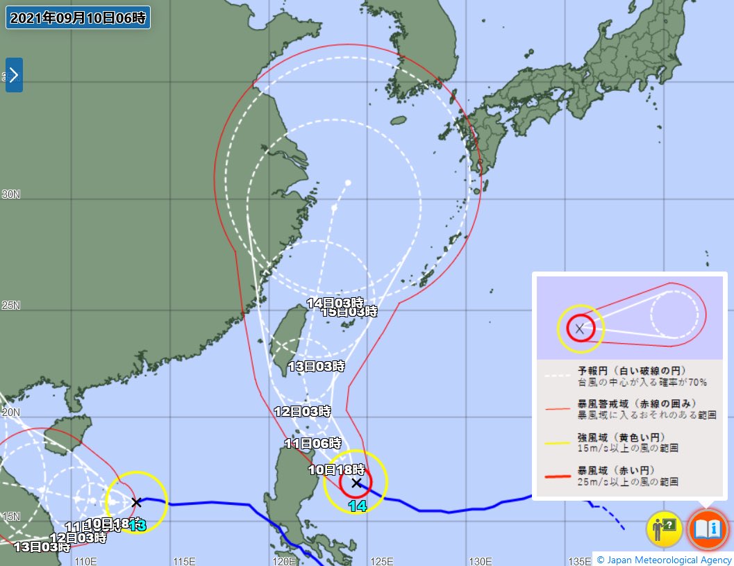 台風にお気をつけください。 猛烈な勢力となっている台風14号は、非常に強い勢力で12〜13日に先島諸島にかなり接近する見込みです。八重山地方では12日は暴風・高波に厳重に警戒をお願いします。最新の台風情報にご留意ください。