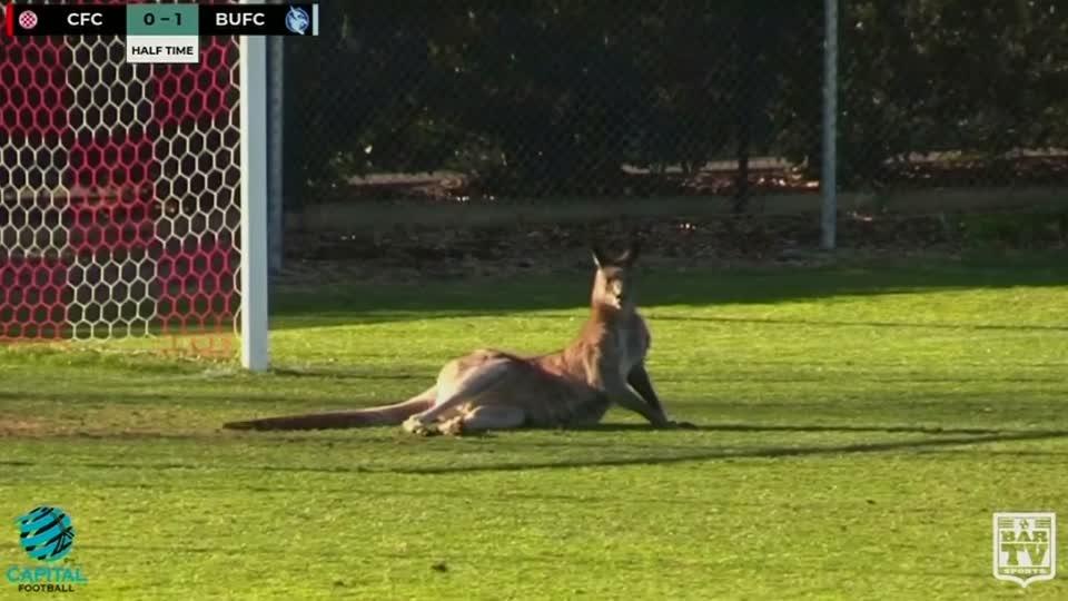 オーストラリアでサッカー場にカンガルー乱入(25日)