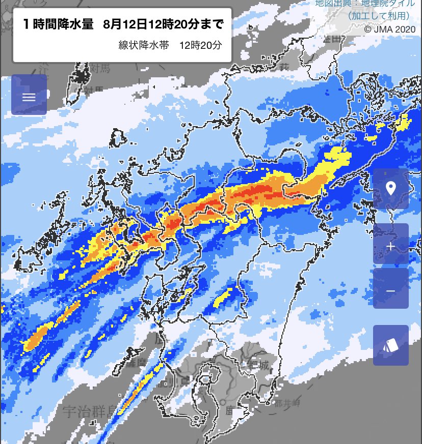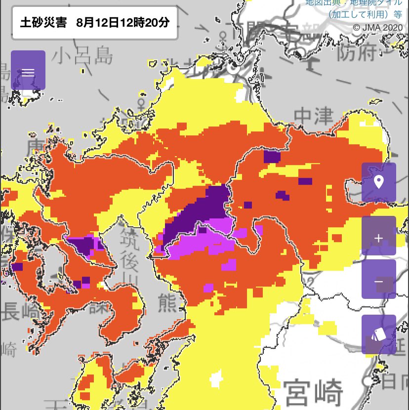九州で大雨になっており、水害の危険度が極めて高くなっている地域があります。ひとたび線状降水帯が発生すると急激に状況が悪化することもあります。最新の気象情報・避難情報を確認して早めの避難判断・行動を!!