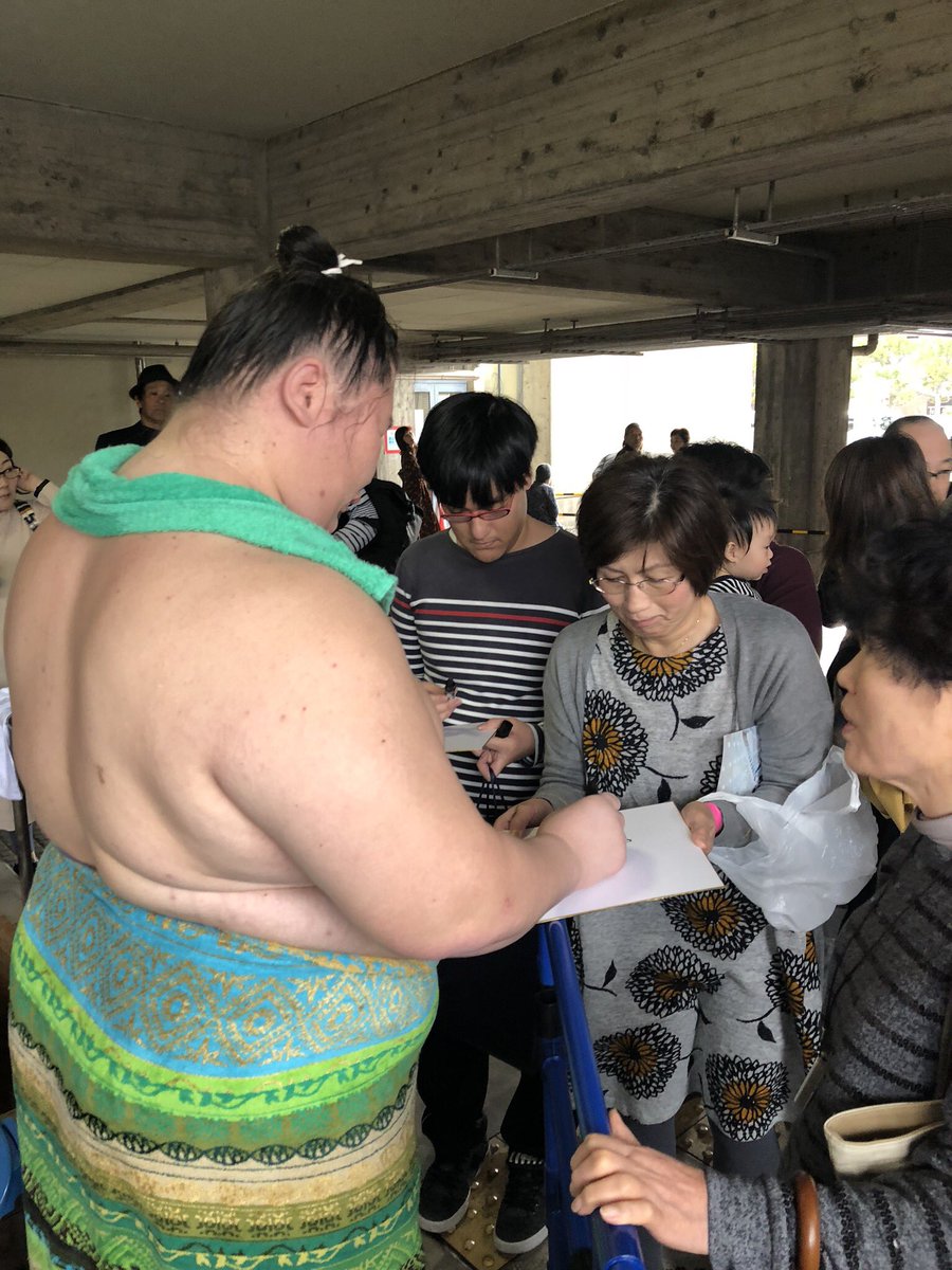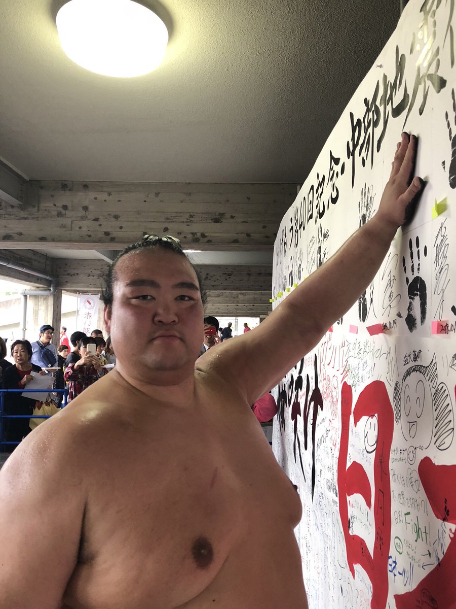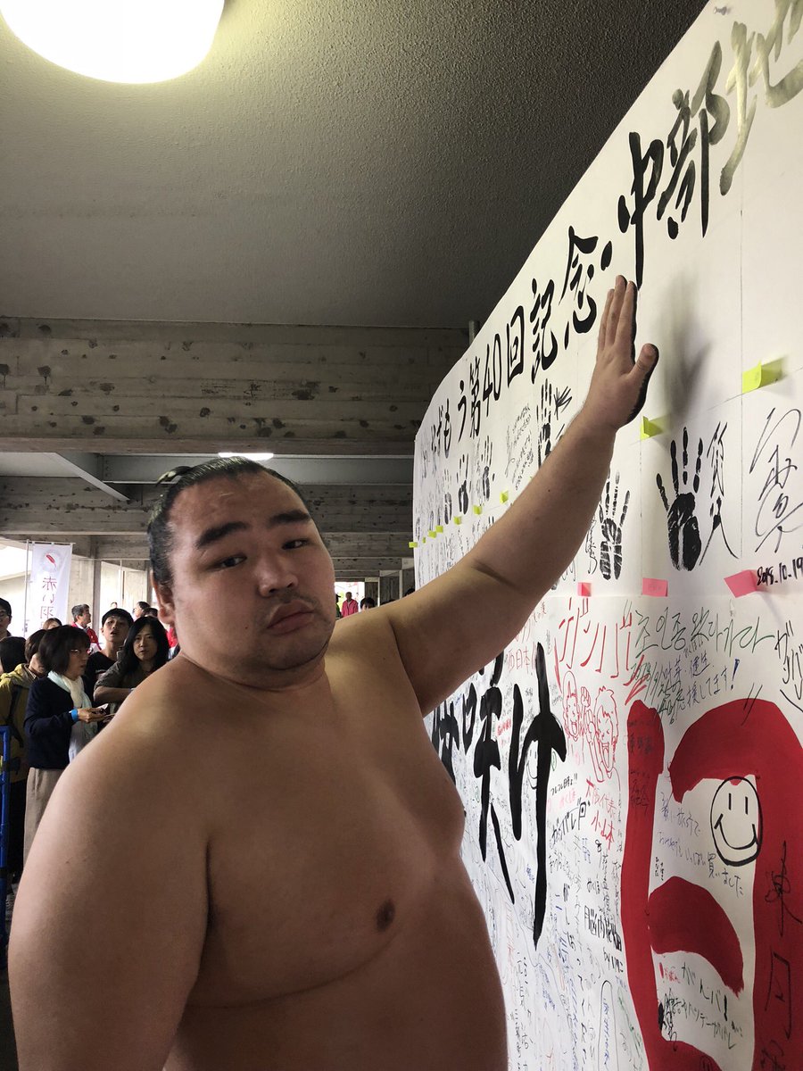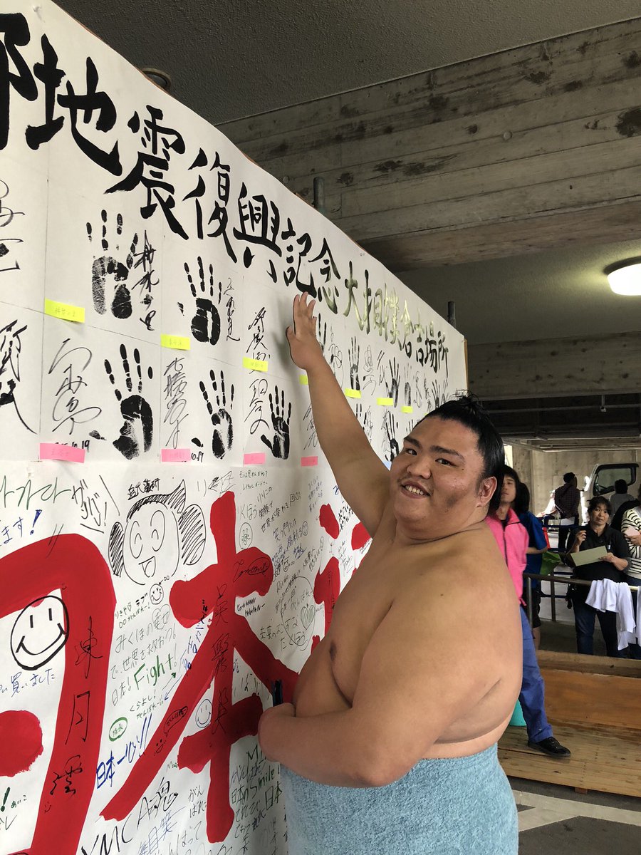 <秋巡業@倉吉市>鳥取城北高校出身の逸ノ城。中部地震復興の寄せ書きにメッセージ。#