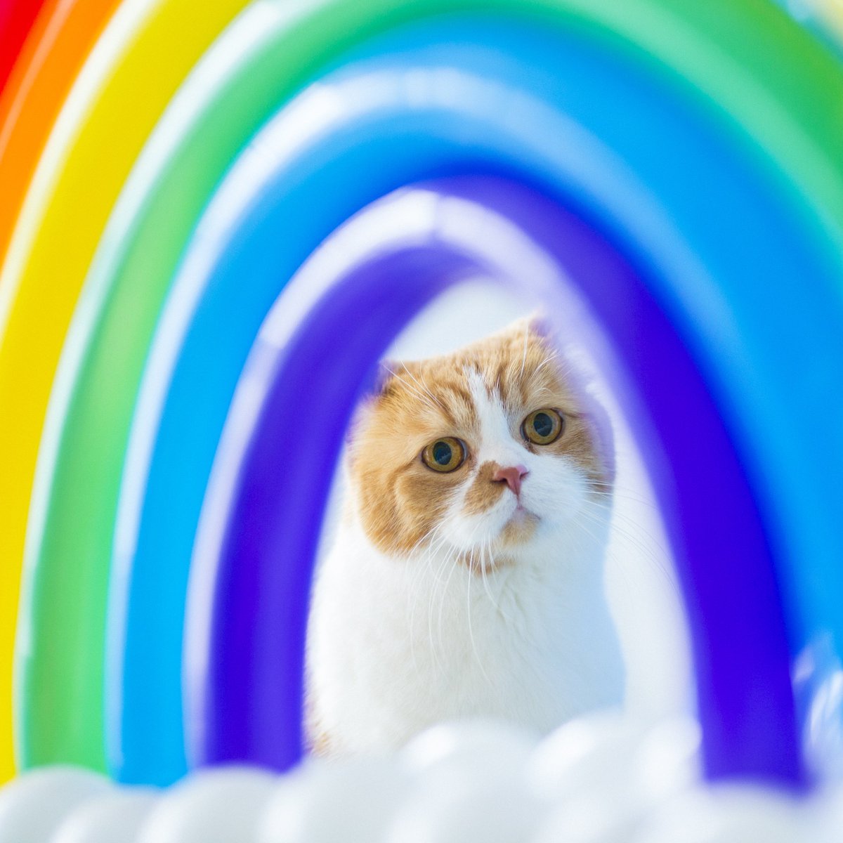 梅雨の季節ですね。 雨がふったら、キレイな虹に出会えるかも? #梅雨 #虹 #レインボー #ふてニャン #ワイモバイル