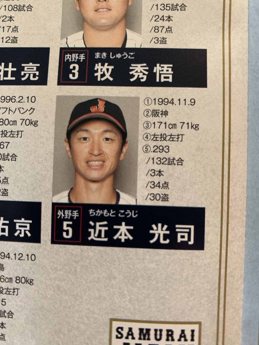 【侍ジャパン公式パンフレットより✍️】 阪神から選出されているメンバーです⭐️近本選手は本日が誕生日。おめでとうございます? #侍ジャパン #近本光司 #佐藤輝明 #中野拓夢 #湯浅京己 #札幌ドーム #阪神タイガース