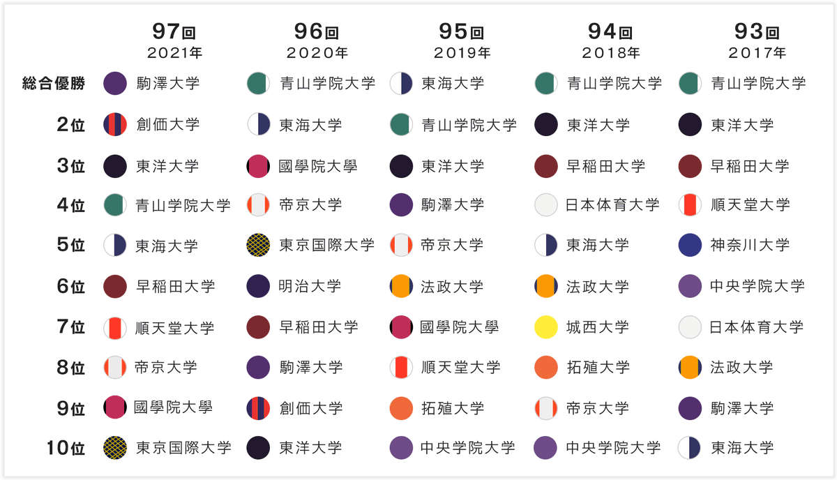 ?【箱根駅伝 丸わかりガイド2022】?♂️ 過去5大会の総合成績1~10位は? #Ya