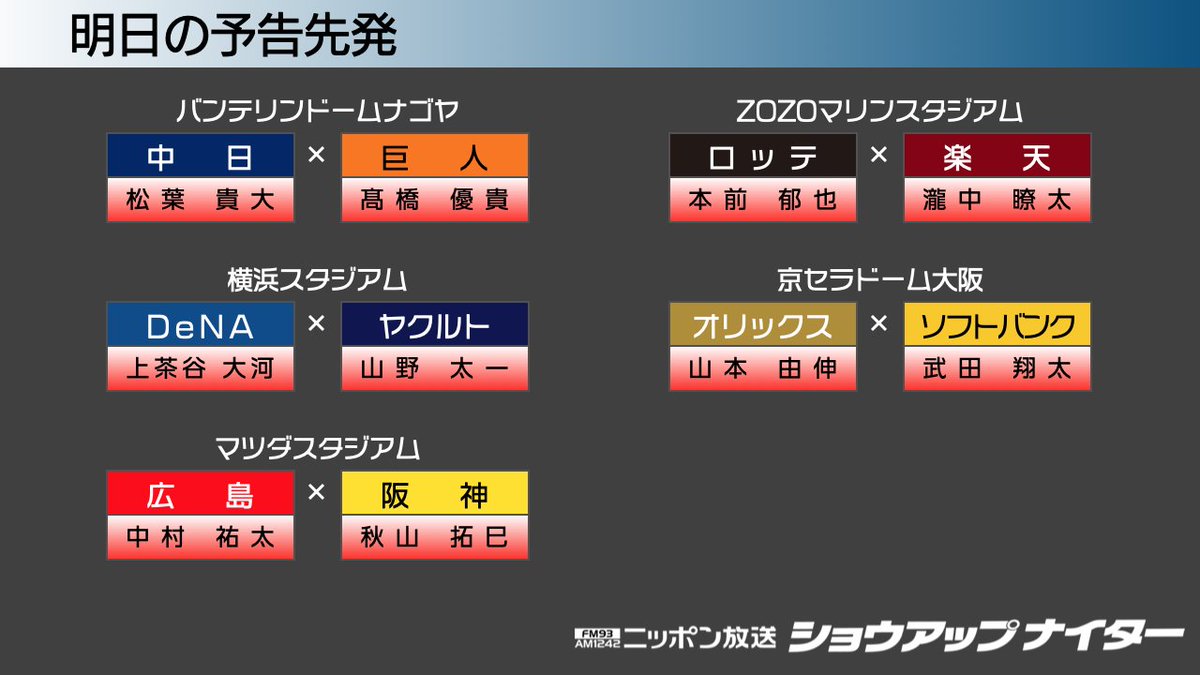 ⚾️明日の予告先発はこちら?♀️ #ショウアップナイター は17