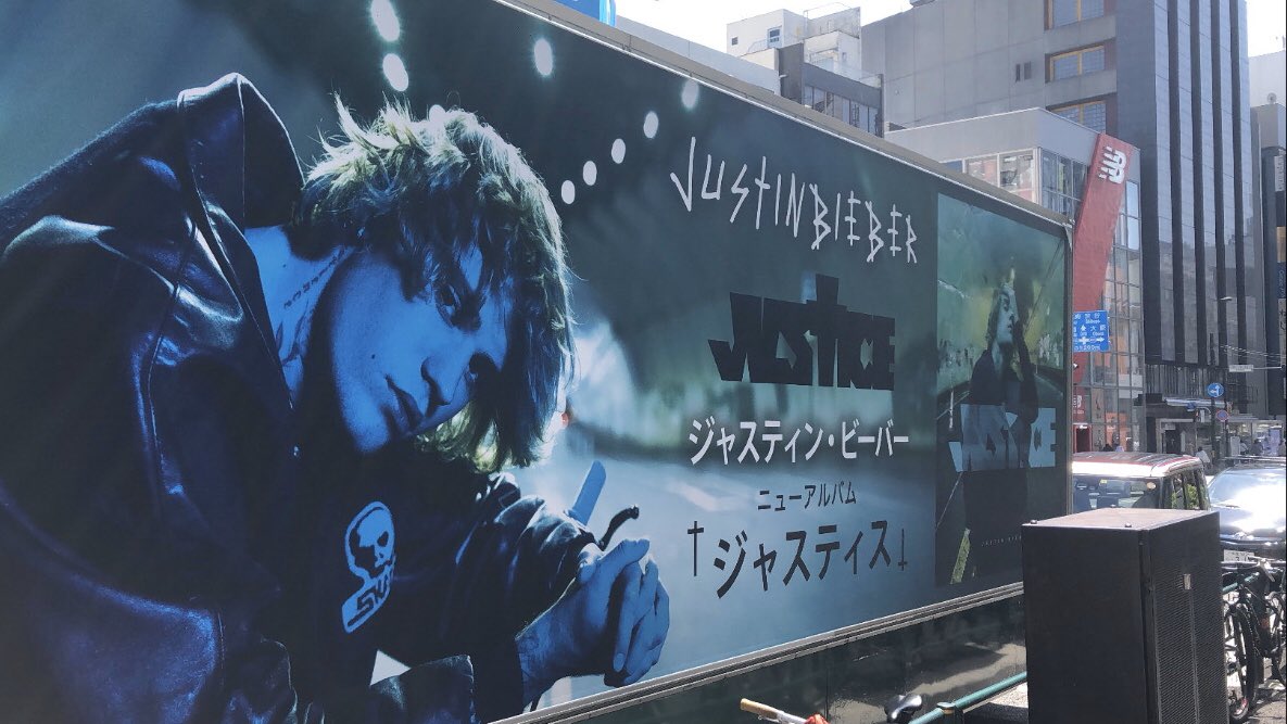 今日から1週間、都内を #ジャスティンビーバー 『ジャスティス』仕様のトラックが走行します?✨ 街で見つけたらぜひ写真を撮ってシェアしてください?? 明後日はいよいよ6年ぶりに #Mステ にも出演!