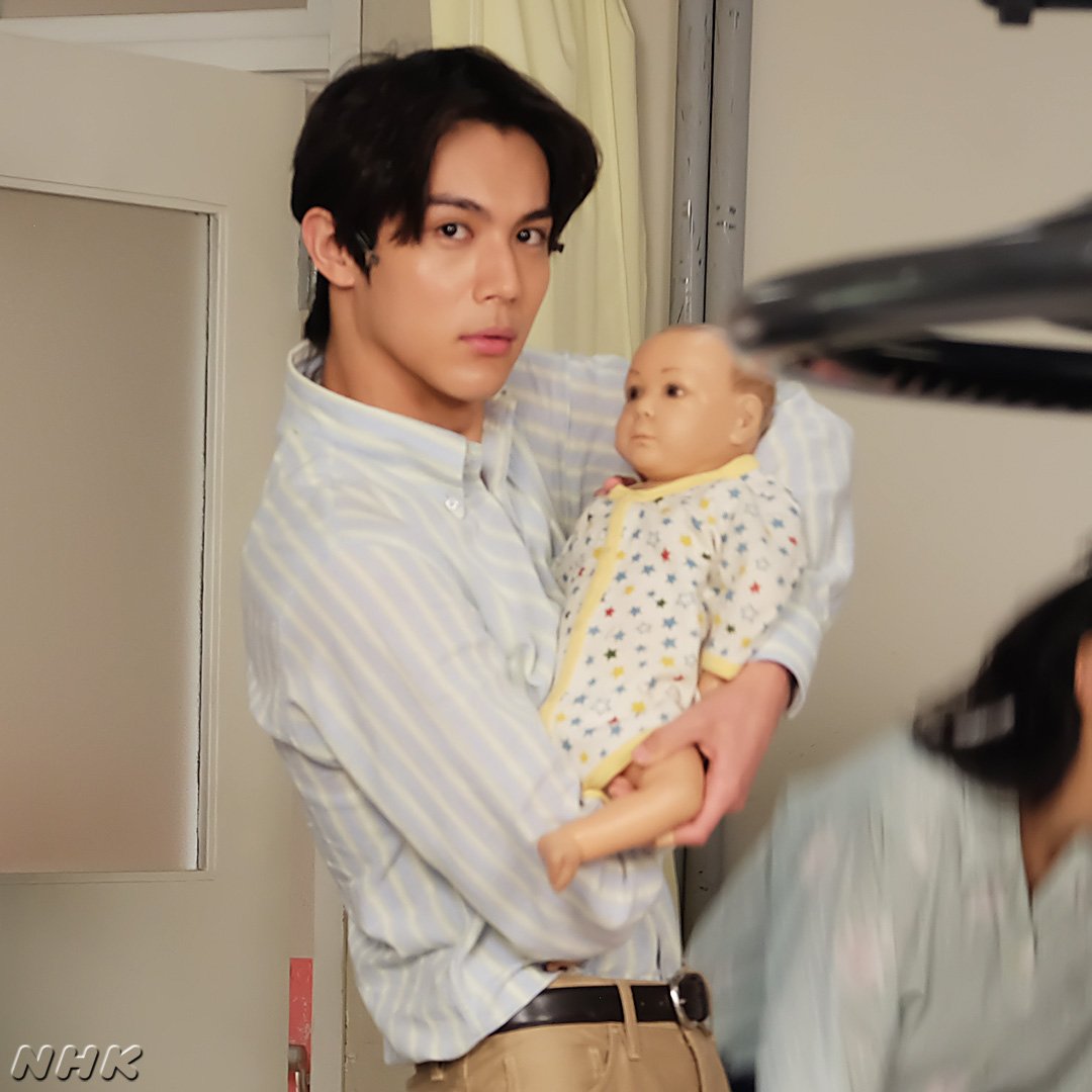 新生児との撮影では、本番以外は人形を使ってカメラチェックや演技を行います。カメラを向けると、広瀬さんも中川さんも同じように人形と一緒にカメラ目線を送ってくれました。 #朝ドラ #なつぞら #広瀬すず #中川大志