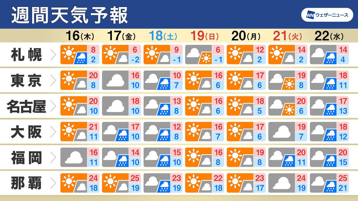 【週間天気予報】 ・週後半は広範囲で雨 強まるところも ・暖かい日多いが一時的に寒の戻り ・全国的に桜の生長や開花が進む 週末18日(土)の関東は冷たい雨で真冬並みの寒さとなる見込みです。服装選びには十分にご注意ください。…