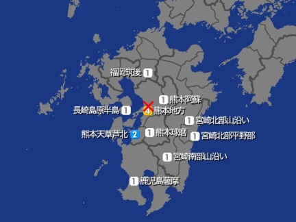 【熊本で震度4の地震】 17時00分ころ、熊本地方の深さ10㌔を震源とする地震がありました。 マグニチュードは3