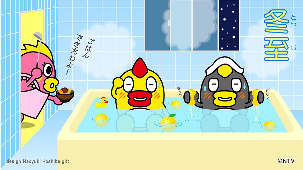 21日(月)は冬至(とうじ)! 最も夜の長い一日だね。 冬将軍に負けないように暖かくしようね。 ゆず湯に入ってあったまろう〜 #そらジロー