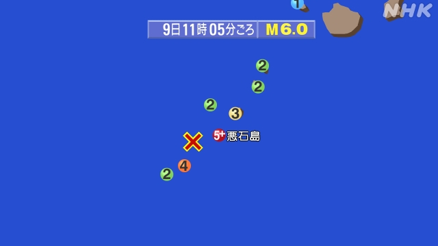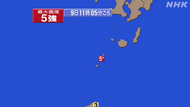 鹿児島県十島村で震度5強 揺れの強かった地域の方は身の安全を確保して下さい。 この地震による津波の心配はありません。
